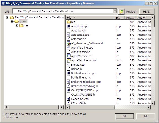And then upon selecting the Repo-Browser for this folder you will see that your main release is now housed in the “trunk” folder (For branches and tag folders you will probably elect to leave this checkbox unset.